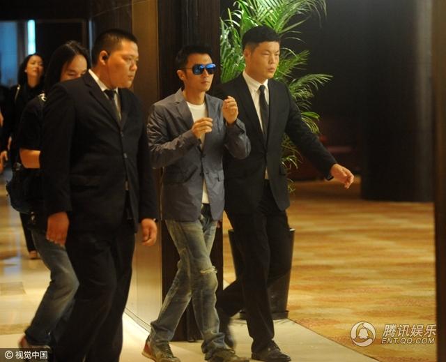 谢霆锋一路保镖护驾。